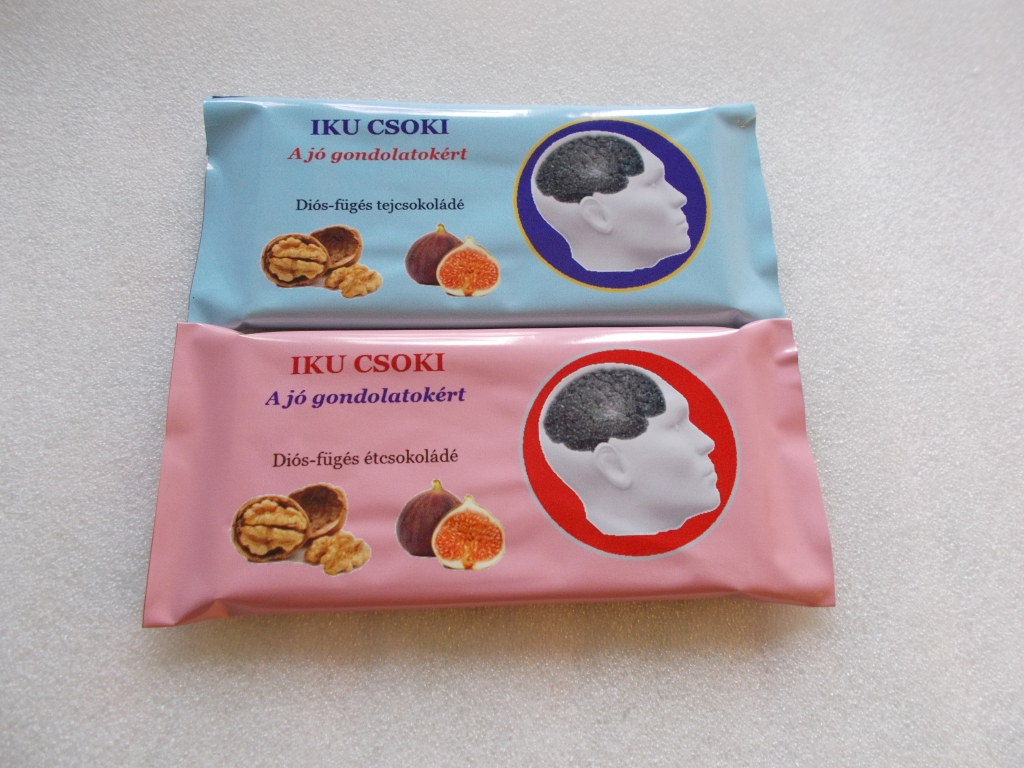 Diós-fügés ízesítésű, kézműves, 100 grammos táblás ét- és tejcsokoládék. Mesterséges adalékanyagokat nem tartalmaznak.